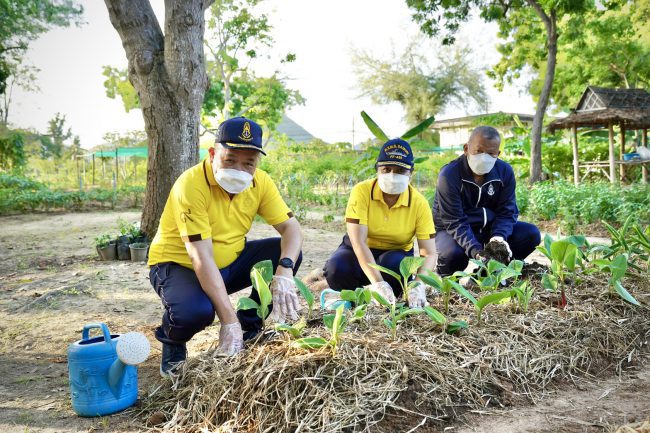 วันที่ 30 ก.ค.64 พล.ร.อ.สุทธินันท์ สมานรักษ์ ผู้บัญชาการกองเรือยุทธการ คุณสุนันท์ สมานรักษ์ ประธานชมรมภริยากองเรือยุทธการ พร้อมด้วยคณะผู้บังคับบัญชา และคณะทำงานสวนผักรักษ์สุข กองเรือยุทธการ ร่วมปลูกพืชสมุนไพร เช่นต้นกระชายขาว และต้นฟ้าทะลายโจร ณ สวนผักรักษ์สุข กองเรือยุทธการ อ.สัตหีบ จ.ชลบุรี