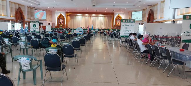เมื่อวันที่ 3 ส.ค. ผู้สื่อข่าวรายงานบรรยากาศการฉีดวัคซีน ที่หอประชุมศรีวชิรโชติ มหาวิทยาลัยราชภัฏพิบูลสงคราม จ.พิษณุโลก ที่เป็นสถานที่ฉีดวัคซีนหลักของจังหวัดพิษณุโลก ซึ่งในช่วงบ่ายเป็นไปอย่างค่อนข้างเงียบเหงา และบางตา เนื่องจากมีประชาชนที่กลุ่มผู้สูงอายุ และ 7 กลุ่มโรคมารับวัคซีนกันตั้งแต่ช่วงเช้าไปแล้ว จำนวน 850 คน ตามที่ลงทะเบียนหมอพร้อมเอาไว้ ซึ่งบรรยากาศเป็นไปอย่างเรียบร้อย