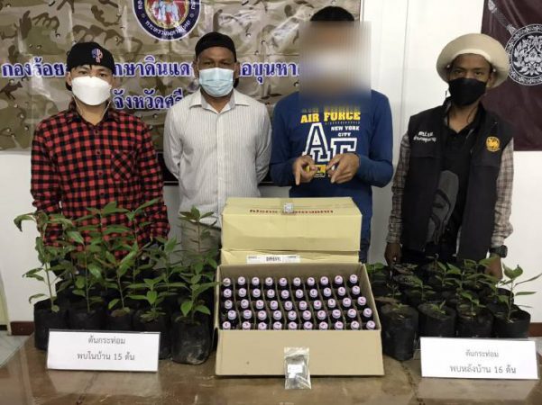 เมื่อวันที่ 3 สิงหาคม 2564 ภายใต้การอำนวยการของ นายวัฒนา พุฒิชาติ ผู้ว่าราชการจังหวัดศรีสะเกษและผอ.ศอ.ปส.จ.ศก. และนายคมป์ สังข์วงษ์ นายอำเภอขุนหาญ ได้สั่งการให้นายจุติเพชร บุญเนตร ปลัดอำเภองานป้องกัน เจ้าพนักงาน ป.ป.ส. เลขประจำตัว 620041 นำกำลัง จนท.สมาชิกกองอาสารักษาดินแดน อ.ขุนหาญ ที่6 สนธิกำลัง ตำรวจ สภ.ขุนหาญ ร่วมกันระดมกวาดล้างอาชญากรรมและการกระทำผิดเกี่ยวกับยาเสพติด ตามแผน”ยุทธการ 238 พิทักษ์นครลำดวน ในพื้นที่รับผิดชอบของ ศป.ปส.อ.ขุนหาญ ผลการดำเนินการ มีดังนี้ เวลาประมาณ 12.30 น. ได้ร่วมทำการจับตัว นายวัชรพงษ์ บุรีรักษ์ ชาวตำบลบักดอง อ.ขุนหาญ จ.ศรีสะเกษ พร้อมด้วยของกลาง ต้นกระท่อม จำนวน 22 ต้น นำหนักประมาณ 75.4 กรัม และยาแก้ไอจำนวน 200 ขวด โดยกล่าวหาว่า ผลิตและมียาเสพติดให้โทษประเภท 5 (พืชกระท่อม) ไว้ในครอบครองโดยผิดกฎหมาย สถานที่เกิดเหตุ บริเวณบ้านเลขที่ 231ซึ่งอยู่ทางด้านทิศตะวันตก บ.บักดอง ม.3 ต.บักดอง อ.ขุนหาญ จ.ศรีสะเกษ และเวลาประมาณ 14.00 น.ได้ร่วมทำการจับตัวนายวุฒิพงษ์ ศรีภักดิ์ ชาวตำบลพราน อ.ขุนหาญ จ.ศรีสะเกษ พร้อมด้วยของกลาง ยาเสพติดให้โทษประเภท 1 (ยาบ้า) ลักษณะชนิดเม็ดสีส้ม จำนวน 317 เม็ด ยาเสพติดให้โทษประเภท 1 (ยาบ้า) ลักษณะชนิดเม็ดสีเขียว จำนวน 4 เม็ด รวมเป็นยาบ้าทั้งหมด 321 เม็ด และผลตรวจปัสสาวะเป็น(บวก) โดยกล่าวหาว่า มียาเสพติดให้โทษประเภท 1 (ยาบ้า) ไว้ในครอบครองเพื่อจำหน่ายโดยผิดกฎหมาย และเสพยาเสพติดให้โทษประเภท 1 (ยาบ้า) โดยผิดกฎหมาย สถานที่เกิดเหตุ บริเวณบ้านเลขที่ 57 บ.ม่วงแยก ม.6 ต.บักดอง อ.ขุนหาญ จ.ศรีสะเกษ เจ้าหน้าที่จึงได้จับกุมตัวผู้ต้องหาฯ พร้อมด้วยของกลางทั้งหมด ส่งพนักงานสอบสวน สภ.ขุนหาญ เพื่อดำเนินคดีตามกฏหมายต่อไป