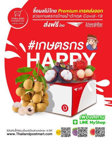 นายเฉลิมชัย ศรีอ่อน รัฐมนตรีว่าการกระทรวงเกษตรและสหกรณ์ ประธานคณะกรรมการพัฒนาและบริหารจัดการผลไม้เปิดเผยว่าได้ร่วมกับกระทรวงพาณิชย์จัดทำโครงการ “เกษตรกร Happy” โดย ขอความร่วมมือไปยังบริษัท ไปรษณีย์ไทยเปิดให้บริการเป็นกรณีพิเศษเร่งด่วนพร้อมกัน 105 สาขาใน 7 จังหวัดภาคใต้ตอนบนให้นำส่งผลไม้จากเกษตรกรถึง ผู้รับในพื้นที่สีแดงทุกพื้นที่ ซึ่งได้รับการยืนยันว่า บริษัท ไปรษณีย์ไทยจะเร่งกำชับไปรษณีย์ทุกสาขาดำเนินการตามข้อเสนอ แต่การจัดส่งอาจช้ากว่าปกติ 1 วันเพราะต้องใช้สาขาปลายทางที่อยู่นอกพื้นที่สีแดงผลัดเวรกันส่งเนื่องจากก่อนหน้านี้พนักงานสบางคนของสาขาในพื้นที่สีแดงติดโควิด-19 โดยไปรษณีย์ไทยจะทำหน้าที่ให้ดีที่สุดเพื่อช่วยชาวสวน ซึ่งขอขอบคุณบริษัทไปรษณีย์ไทยและกระทรวงดิจิทัลเพื่อเศรษฐกิจและสังคม (ดีอีเอส) ดีอีเอสที่ร่วมมือ นอกจากนี้ได้ขอความร่วมมือไปยังบริษัทเคอรรี่ ซึ่งตกลงที่จะเปิดบริการอีกครั้งเช่นกัน เพื่อช่วยเหลือเกษตรกรที่ได้รับผลกระทบจากโควิด19 เนื่องจากระบบขนส่งเป็นกลไกสำคัญในการค้าขายและระบายผลไม้ออกจากแหล่งผลิตทั้งการค้าแบบออฟไลน์และออนไลน์