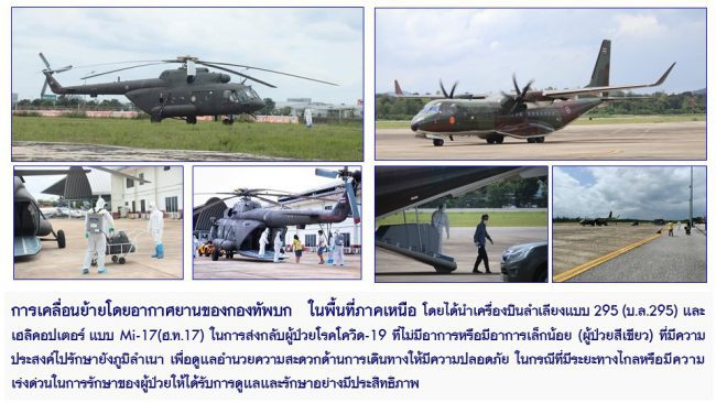 1. การปฏิบัติของเครื่องบินลำเลียงแบบ 295 (บ.ล.295) จำนวน 2 ครั้ง ส่งผู้ป่วยฯ จำนวน 45 คน รายละเอียดดังนี้