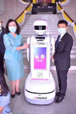 หุ่นยนต์ ATOMIC หุ่นยนต์ต้อนรับอัตโนมัติ เป็นเทคโนโลยีที่ได้รับการพัฒนาจาก บริษัท แอโร กรุ๊ป (1992) จำกัด โดย ดร.กฤษดา อัครพัทธยากุล และทีมงาน มีคุณสมบัติเป็นหุ่นยนต์ต้อนรับ สามารถทักทาย สอบถาม และให้ข้อมูลข่าวสารแก่ผู้มาติดต่อราชการที่ศาลเยาวชนและครอบครัวกลางได้ สามารถหลบหลีกสิ่งกีดขวางได้อย่างอัตโนมัติ และทำ Mapping ด้วย SLAM ทำให้สามารถให้บริการแก่ผู้มาติดต่อราชการศาลได้อย่างเต็มที่และปลอดภัย