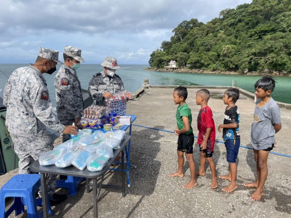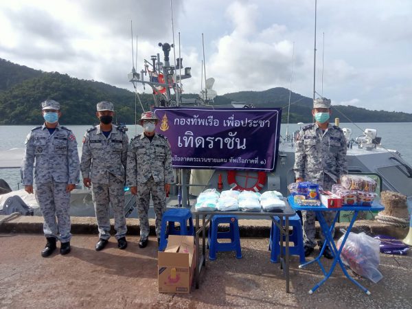 ทหารเรือในทุกพื้นที่ของท้องทะเลอ่าวไทยและอันดามัน ยังคงห่วงใยพี่น้องประชาชน ภายใต้สถานการณ์ Covid -19 เร่งช่วยเหลือและบรรเทาความเดือดร้อน ล่าสุดเมื่อ 8 ส.ค.64 หมวดเรือลาดตระเวนชายแดน ทัพเรือภาคที่ 1 โดยหมู่เรือลาดตระเวนชายแดนส่วนที่ 1 (มชด./1) ส่งเรือ ต.237 ออกลาดตระเวนในพื้นที่เกาะกูด อ.เกาะกูด จ.ตราด พร้อมทั้งจัด จนท.พยาบาลทหารเรือกับยาและเวชภัณฑ์ จำนวนหนึ่ง ตั้งโต๊ะข้างเรือ บริเวณท่าเทียบเรืออ่าวใหญ่ เกาะกูด ให้บริการตรวจรักษาเบื้องต้นและให้คำปรึกษาด้านการแพทย์ แก่พี่น้องประชาชนในพื้นที่เกาะกูด อีกทั้งยังแจกจ่ายยา อาธิ ยาแก้ปวด ยาแก้อักเสบ ยาแก้ไอ เป็นต้น ให้แก่ประชาชนอีกด้วย