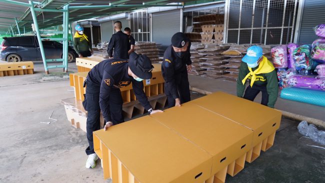 ด้าน ชค.ทพ.12 จัดจนท.ประกอบเตียงกระดาษเสริมอีก 100 เตียง ให้ รพ.สนามโรงเกลือ