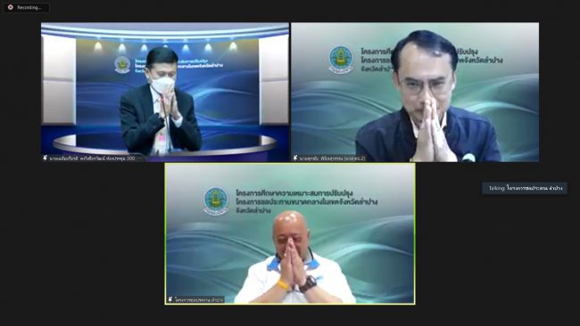 นายเฉลิมเกียรติ คงวิเชียรวัฒน์ รองอธิบดีฝ่ายวิชาการ กรมชลประทาน และสื่อมวลชนทุกแขนง เข้าร่วมการกิจกรรมสื่อสัญจรผ่านระบบออนไลน์ (Zoom)โครงการศึกษาความเหมาะสมการปรับปรุงโครงการชลประทานขนาดกลางในเขตจังหวัดลำปาง เพื่อสรุปผลการศึกษาโครงการความเหมาะสมการปรับปรุงโครงการชลประทานขนาดกลางในเขตจังหวัดลำปางขึ้น