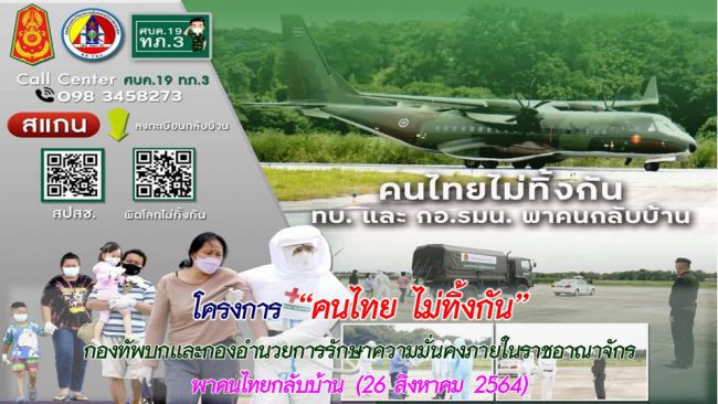 โครงการ “คนไทย ไม่ทิ้งกัน” กองทัพบกและกองอำนวยการรักษาความมั่นคงภายในราชอาณาจักร พาคนไทยกลับบ้าน