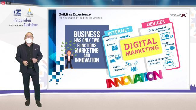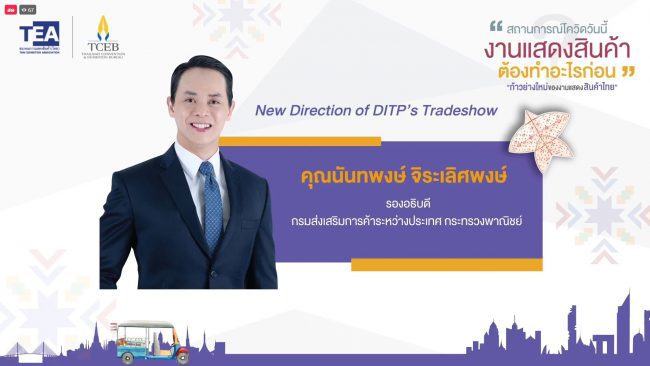 ทีเส็บเปิดแผนขับเคลื่อนงานแสดงสินค้าในประเทศ จับมือสมาคมการแสดงสินค้า (ไทย) TEA และเครือข่ายพันธมิตรด้านไมซ์ ร่วมส่งเสริมการตลาดจัดงานเสวนาออนไลน์ 3 ภูมิภาค เผยกลยุทธ์ขับเคลื่อนอุตสาหกรรมงานแสดงสินค้าในประเทศยุควิถีใหม่ เชื่อมโยงเมืองไมซ์ ดันการจัดงานแสดงสินค้ากระตุ้นเศรษฐกิจและกระจายรายได้สู่ภูมิภาค