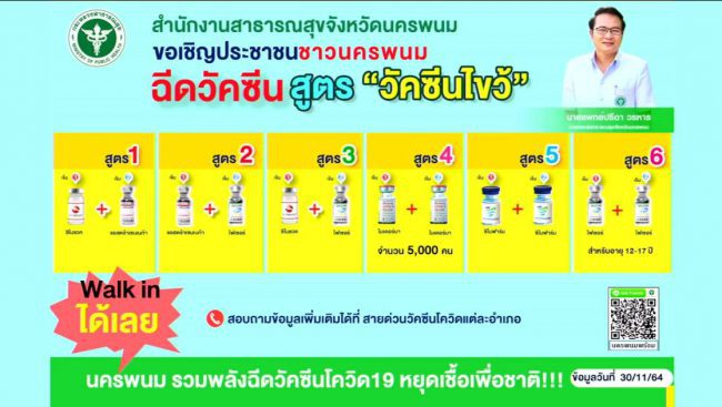 จ.นครพนม เตรียมจัดมหกรรมบริการฉีดวัคซีน ชิโนฟาร์ม 2 เข็ม ฟรี 3-4 ธันวาคมนี้