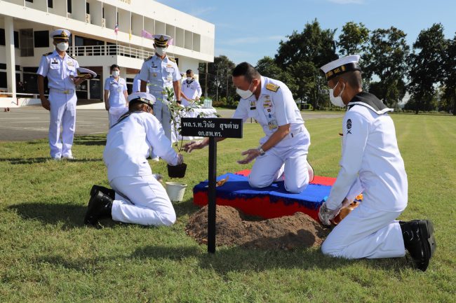 วันนี้ (3 ธ.ค.64) เวลา 10.00 น. พลเรือโท วินัย สุขต่าย เจ้ากรมสรรพาวุธทหารเรือ พร้อมด้วยผู้บังคับบัญชา และนายทหารชั้นผู้ใหญ่ ร่วมจัดกิจกรรมปลูกต้นไม้ เนื่องในวันคล้ายวันพระราชสมภพ พระบาทสมเด็จพระบรมชนกาธิเบศร มหาภูมิพลอดุลยเดชมหาราช บรมนาถบพิตร 5 ธันวาคม 2564 ณ สนามหญ้าหน้า กองบังคับการกรมสรรพาวุธทหารเรือ อ.สัตหีบ จ.ชลบุรี โดยทำการปลูกต้นรวงผึ้งจำนวน 10 ต้น
