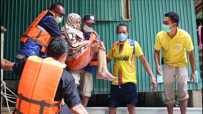 ล่าสุด พ.อ.ก่อเกียรติ เข็มแดง รองผู้บังคับหน่วยเฉพาะกิจนราธิวาส พ.อ.ทวีรัตน์ เบญจาทิกุล ผู้บังคับหน่วยเฉพาะกิจกรมทหารพรานที่ 45 และนายประเสริฐ แซ่ฮ่อ นายกเทศมนตรีตำบลตันหยงมัส อ.ระแงะ พร้อมกำลังพลจำนวนหนึ่ง ได้ร่วมขึ้นเรือท้องแบนและเดินลุยกระแสน้ำที่เชี่ยวกลาก ไปให้การช่วยเหลือ นางตีมะห์ เปาะเล็ง อายุ 67 ปี ซึ่งเป็นผู้ป่วยติดเตียง ที่อาศัยอยู่ในหมู่บ้านบ่อทอง ม.1 ต.ตันหยงมัส อ.ระแงะ ไปอาศัยอยู่ยังศูนย์อพยพชั่วคราวของเทศบาลตันหยงมัสได้จัดเตรียมไว้