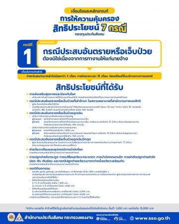 การให้ความคุ้มครอง สิทธิประโยชน์ กองทุนประกันสังคม กรณีที่ 1 : ประสบอันตรายหรือเจ็บป่วย