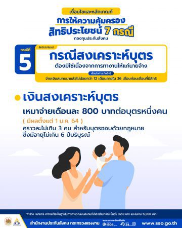 การให้ความคุ้มครอง สิทธิประโยชน์ กองทุนประกันสังคม กรณีที่ 5 : สงเคราะห์บุตร