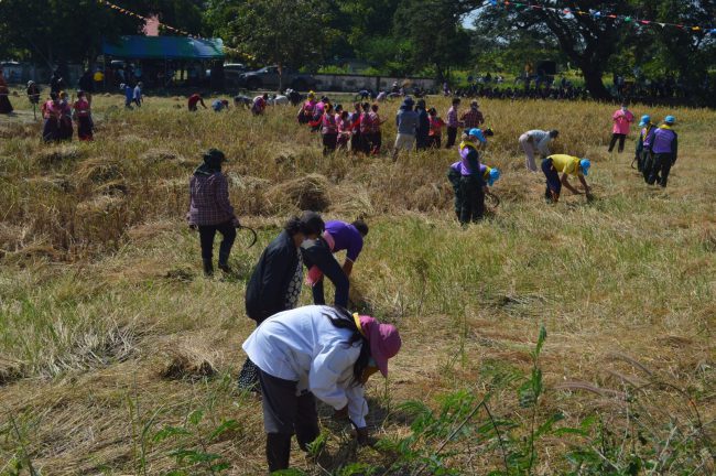 ซึ่งงานสืบสานประเพณีตามรอยเท้าพ่ออย่างพอเพียง ณ โรงเรียนบ้านแสนสุข กิจกรรมดำ “วันแม่ เกี่ยววันพ่อ “ ครั้งที่ ๕ นายวัลลพ ประวัติวงศ์ ปลัดจังหวัดสระแก้ว กล่าวว่าในวันนี้ จากคำกล่าวรายงานเห็นได้ว่า หลักปรัชญาของเศรษฐกิจพอเพียง เป็นอันดับแรกที่ต้องส่งเสริมจัดให้เกิดขึ้นในระดับพื้นที่ โรงเรียนบ้านแสนสุขเป็นศูนย์กลางการส่งเสริม จัดกระบวนการเรียนรู้ และหน่วยประสานงานแหล่งเรียนรู้หลักปรัชญาเศรษฐกิจพอเพียงภายในและประชาชนทั่วไป ได้ตระหนักเกิดความภาคภูมิใจในสถาบันหลักของชาติ และเป็นการขยายโครงการอันเนื่องมาจากพระราชดำริตามหลักปรัชญาของเศรษฐกิจพอเพียง สู่ประชาชนอย่างแพร่หลายบัดนี้ได้เวลาอันเป็นมงคลฤกษ์แล้วเปิด งานสืบสานประเพณีตามรอยเท้าพ่ออย่างพอเพียง กิจกรรมดำวันแม่ เกี่ยววันพ่อ ครั้งที่ ๕ รักแม่โพสพ รวมถึงจะมีการเพิ่มฐานเรียนรู้อื่นในอนาคต เพื่อยกระดับและพัฒนาให้เป็นศูนย์เรียนรู้ สำหรับฝึกอบรมพัฒนาองค์ความรู้ด้านเศรษฐกิจพอเพียง ตามแนวทางศาสตร์พระราชา ให้กับภาคีเครือข่ายและประชาชนทั่วไปได้ มีความรู้ความเข้าใจในการประยุกต์ใช้ศาสตร์พระราชา เพื่อแก้ไขปัญหาเศรษฐกิจ สังคม และสิ่งแวดล้อม แก่ชุมชนในพื้นที่ดังกล่าว