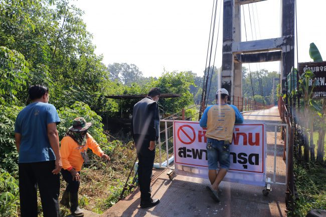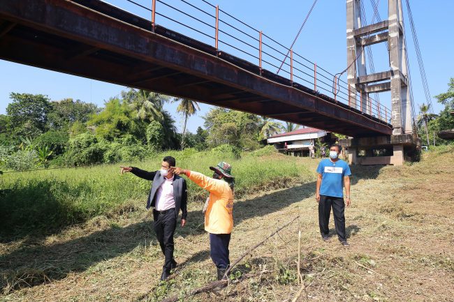 ขณะเดียวกันได้ตรวจสอบสะพานสลิงข้ามแม่น้ำน่านบริเวณบ้านวังมะด่านหมู่ที่ 9-หมู่ 11 บ้านย่านยาว ตำบลวงฆ้อง อำเภอพรหมพิราม ภายหลังได้รับการประสานจาก นายศิริโภชน์ ธเนศราภา สมาชิกสภาองค์การบริหารส่วนจังหวัดพิษณุโลก เขตอำเภอพรหมพิราม เพื่อขอให้องค์การบริหารส่วนจังหวัดพิษณุโลกส่งเจ้าหน้าที่เข้าดำเนินการตรวจสอบและซ่อมแซมสะพานสลิงดังกล่าวเพื่อแก้ปัญหาความเดือดร้อนให้แก่ประชาชนอย่างเร่งด่วน ร่วมกับ นายทรงพล กลัดอยู่ ผู้ใหญ่บ้านหมู่ที่ 3 และนายสมเกียรติ เกตุคำ ผู้ใหญ่บ้านหมู่ที่ 9 ตำบลวงฆ้อง อำเภอพรหมพิราม ซึ่งพบว่าบริเวณสายลวดสลิงที่ยึดตัวสะพานกับพื้นสะพานชำรุดเกรงว่าจะเป็นอันตรายหรือเกิดอุบัติเหตุต่อผู้ใช้สะพานสลิงดังกล่าวสัญจรไปมาได้ โดยจะได้สั่งการให้เจ้าหน้าที่กองช่าง องค์การบริหารส่วนจังหวัดพิษณุโลก เข้าดำเนินการตรวจสอบและปรับปรุงซ่อมแซมสะพานสลิงดังกล่าวให้มีสภาพสมบูรณ์พร้อมใช้งานโดยเร่งด่วนภายในสัปดาห์หน้า เพื่อสร้างความอุ่นใจและบรรเทาปัญหาความเดือดร้อนเบื้องต้นให้แก่ประชาชนต่อไป