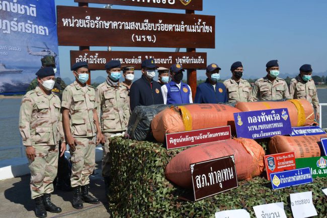 เมื่อวันที่ 7 ธ.ค 2564 เวลา 13.30 น. นรข.นครพนม แถลงตรวจยึดช่อดอกกัญชาแห้ง 135 กิโลกรัม วันนี้ 7 ธันวาคม 2564 ที่หน่วยเรือรักษาความสงบเรียบร้อยตามลำแม่น้ำโขง อำเภอเมือง จังหวัดนครพนม พล.ร.ต.สมบัติ จูถนอม ผู้บัญชาการหน่วยเรือรักษาความสงบเรียบร้อยตามลำแม่น้ำโขง พร้อมด้วย น.อ.พรภิรมย์ ยศบุญ ผู้บังคับการหน่วยเรือรักษาความสงบเรียบร้อยตามลำแม่น้ำโขง เขตนครพนม พ.ต.อ.สมศักดิ์ ตระการไพโรจน์ รองผู้บังคับการตำรวจภูธรจังหวัดนครพนม พ.ต.อ.หญิง จิรนันท์ ธนะสิงห์ ผู้กำกับพิสูจน์หลักฐานจังหวัดนครพนม และเจ้าหน้าที่หน่วยงานที่เกี่ยวข้อง ร่วมกันแถลงผลการตรวจยึดช่อดอกกัญชาแห้ง จำนวน 135 กิโลกรัม ภายหลังน.ท.วรภัทร แสงสุวรรณ ได้จัดจุดลาดตระเวนทางบกและทางน้ำตามภารกิจ พบการลักลอบนำเข้ายาเสพติดในพื้นที่บริเวณด้านใต้ศาลหลักเมืองท่าอุเทน อำเภอท่าอุเทน จังหวัดนครพนม ในเวลา 4.35 น.