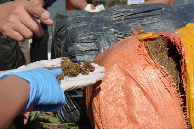 โดยชุดลาดตระเวนทางบกได้ตรวจพบกลุ่มบุคคลกำลังทำการขนวัตถุสีดำขนาดใหญ่อยู่ริมฝั่งแม่น้ำโขงด้วยความเร่งรีบ จึงได้เข้าแสดงตัวเพื่อทำการตรวจสอบ เมื่อกลุ่มคนดังกล่าวสังเกตุเห็นรถเจ้าหน้าที่ ที่แม้จะทำการหรี่ไฟและวิ่งพุ่งตรงเข้าไปหาด้วยความรวดเร็ว ก็ได้ทิ้งทุกอย่างวิ่งหลบหนีหายไปในความมืดทันทีก่อนเจ้าหน้าที่จะเข้าถึงจุด ซึ่งภายหลังการเข้าตรวจสอบพื้นที่และวัตถุต้องสงสัยพบว่าเป็นกัญชาแห้งที่มีความแตกต่างจากทุกครั้ง โดยครั้งนี้เป็นช่อดอกกัญชาแห้งบริสุทธิ์ทั้งหมด ห่อในกระสอบ จำนวน 6 กระสอบ มีพลาสติกสีดำห่อทับอีกชั้นอย่างดี น้ำหนักกระสอบละ 25 กิโลกรัม ซึ่งเจ้าหน้าที่คาดว่ากลุ่มขบวนการลักลอบนำเข้ายาเสพติดอาจจะนำไปใช้เป็นส่วนผสมสารเสพติดชนิดอื่นๆ เพื่อให้ออกฤทธิ์ที่แตกต่างกันออกไปเพราะช่อดอกมีความบริสุทธิ์ยังไม่มีสิ่งเจือปน และอีกส่วนคาดว่าจะนำส่งขายให้กลุ่มผู้เสพช่อดอกโดยตรง โดยราคาจากการสืบทราบจะอยู่ที่กิโลกรัม 20,000 บาท ซึ่งต่างจากกัญชาอัดแท่งเกรดพรีเมี่ยมที่เคยจับได้ที่จะอยู่ที่ราคากิโลกรัมละ 6,000 บาท โดยหลังจากนี้จะมีการนำของกลางทั้งหมดส่งพนักงานสอบสวน สภ.ท่าอุเทน เพื่อดำเนินการตามกฎหมายต่อไป