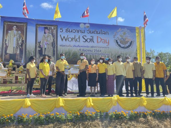 เมื่อวันที่ 9 ธันวาคม 2564 เวลา 10.00 น. ที่สถานีพัฒนาที่ดินศรีสะเกษ อำเภอเมืองศรีสะเกษ จังหวัดศรีสะเกษ นายวัฒนา พุฒิชาติ ผู้ว่าราชการจังหวัดศรีสะเกษ เป็นประธานเปิดงานวันดินโลก ประจำปี 2564 (World Soil Day) โดยมีนายศรจิตร ศรีณรงค์ ผู้อำนวยการสำนักงานพัฒนาที่ดิน เขต 4 นางสาวนตนภา คูณพันธ์ ผู้อำนวยการสถานีพัฒนาที่ดินศรีสะเกษ รองผู้บังคับการตำรวจภูธรจังหวัด คลังจังหวัด ผอ.ทสจ. หัวหน้าส่วนราชการจังหวัดสังกัดกระทรวงเกษตรและสหกรณ์ ผู้บริหารองค์กรปกครองส่วนท้องถิ่น ผู้บริหารองค์กรเอกชน จิตอาสาพระราชทาน คณะหมอดินอาสา ผู้ประกอบการ และเกษตรกร เข้าร่วมกิจกรรมเป็ยจำนวนมาก ซึ่งจังหวัดศรีสะเกษโดยสถานีพัฒนาที่ดินศรีสะเกษ กำหนดจัดพิธีการและกิจกรรมในหัวข้อ คือ Halt soil salinization, boost soil productivity : “พิชิตดินเค็ม เติมเต็มผลผลิต สร้างชีวิตเกษตรกร” ประกอบไปด้วย ถวายพานพุ่มสักการะ และถวายสดุดีน้อมรำลึกในพระมหากรุณาธิคุณ พระบาทสมเด็จพระบรมชนกาธิเบศร มหาภูมิพลอดุลยเดชมหาราช บรมนาถบพิตร มอบเกียรติบัตรและบัตรยินดีจากกรมพัฒนาที่ดิน ให้แก่เกษตรกร จำนวน 4 ราย กิจกรรมสาธิตไถกลบปอเทือง เยี่ยมชมนิทรรศการวันดินโลกและตลาดสีเขียวจากเครือข่ายผู้ผลิตในจังหวัดศรีสะเกษ การดำเนินการตามมาตรการป้องกันการแพร่ระบาดของโรคโควิด-19 โดยเคร่งครัด ทั้งนี้เพื่อเป็นการน้อมรำลึกในพระมหากรุณาธิคุณของพระบาทสมเด็จพระบรมชนกาธิเบศร มหาภูมิพลอดุลยเดชมหาราช บรมนาถบพิตร ที่ทรงปฏิบัติพระราชกรณียกิจเกี่ยวกับการพัฒนาดิน จนเป็นที่ประจักษ์อย่างกว้างขวางทั้งในประเทศและนานาชาติ