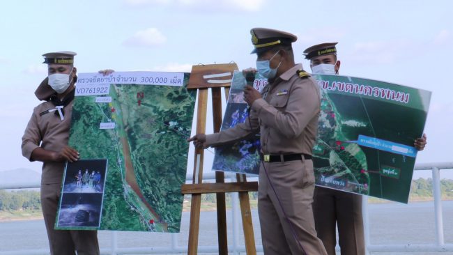 วันที่ 13 ธันวาคม 2564 เวลา 15.30 น. บริเวณลานอเนกประสงค์ริมแม่น้ำโขง กองบัญชาการหน่วยเรือรักษาความสงบเรียบร้อยตามลำแม่น้ำโขง (นรข.) นายชาธิป รุจนเสรี ผู้ว่าราชการจังหวัดนครพนม พล.ร.ต.สมบัติ จูถนอม ผู้บัญชาการหน่วยเรือรักษาความสงบเรียบร้อยตามลำแม่น้ำโขง และหน่วยงานความมั่นคง ร่วมแถลงข่าวการตรวจยึดยาเสพติดให้โทษประเภท 1 (ยาบ้า) จำนวน 598,000 เม็ด เกิดขึ้นรวม 2 สถานการณ์