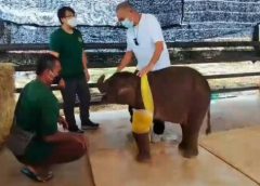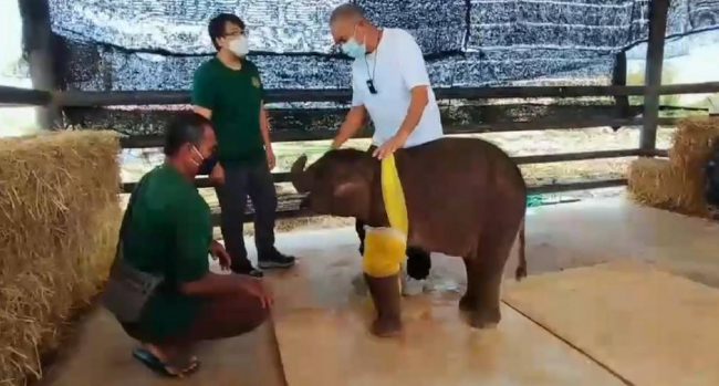 นายกัมพล ตันสัจจา ประธานสวนนงนุช พัทยา พร้อมด้วย สัตวแพทย์หญิง(สพ.ญ.) สุนิตา วิงวอน สัตวแพทย์กรมอุทยานแห่งชาติสัตว์ป่าและพันธุ์พืช ได้เข้ามาทำการดูอาการพังฟ้าใส โดยได้ทำการล้างแผลที่ถูกอาวุธปืนยิง และ แผลที่ทำการผ่าตัดขาไป ซึ่งพบว่าอาการดีขึ้น ไม่ได้ให้น้ำเกลือแล้ว เริ่มมีอาการร่าเริง เล่นได้ แต่ก็ยังหวาดระแวงในช่วงล้างแผลอยู่