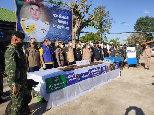 เมื่อวันที่ 15 ธ.ค.64 พล.ร.ต.สมบัติ จูถนอม ผบ.นรข. ได้รับแจ้งจากสายข่าวว่าจะมีการลักลอบลำเลียงยาเสพติด ในพื้นที่รับผิดชอบ สน.เรือมุกดาหาร บริเวณบ้านสัมป่อย ต.นาสีนวน อ.มุกดาหาร จ.มุกดาหาร จึงได้สั่งการให้ น.อ.พรภิรมย์ ยศบุญ ผบ.นรบ.เขตนครพนม ให้ น.ท.พิเชษฐ์ เมืองโคตร หน.สน.เรือมุกดาหาร จัดชุดลาดตระเวนชุ่มเฝ้าตรวจในพื้นที่รับผิดชอบดังกล่าว ตามข่าวที่ได้รับแจ้งมา จนกระทั่งเวลาประมาณ 03.00 น. ของวันที่ 16 ธ.ค.64 เจ้าหน้าที่ชุดปฏิบัติการที่ชุ่มอยู่ได้ตรวจพบว่า มีเรือกีบแล่นมาจากทางฝั่ง สปป.ลาว เข้ามาจอดริมตลิ่งฝั่งไทย บริเวณริมตลิ่ง บ้านส้มป่อย ต.นาสีนวน ซึ่งอยู่ห่างจากเจ้าหน้าที่ชุดปฏิบัติการที่ชุ่มอยู่ประมาณ 50 เมตร และหลังจากนั้นก็ได้โยนถุงกระสอบบางอย่างขึ้นมาบนตลิ่งริมน้ำ แล้วหลังจากโยนเสร็จก็ได้หันหัวเรือกลับและขับเรือกลับไปยังฝั่ง สปป.ลาว เจ้าหน้าที่ชุดปฏิบัติการที่อยู่ในบริเวณนั้น จึงเฝ้าสังเกตต่อไปว่าจะมีใครมารับวัตถุสิ่งของดังกล่าวหรือไม่ จนกระทั่งเวลา 04.30 น. ก็ไม่มีใครมาแสดงตัวมาเอาถุงกระสอบวัตถุต้องสงสัยดังกล่าว เจ้าหน้าที่ชุดปฏิบัติการที่อยู่ใกล้ๆ ในบริเวณนั้น จึงได้เข้าไปพิสูจน์ทราบวัตถุต้องสงสัยดังกล่าวที่วางอยู่ พบว่า เป็นลักษณะคล้ายกระสอบข้าวขนาด 50 กก. 1 กระสอบ ด้านข้างเขียนเป็นตัวหนังสือภาษาลาว