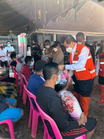 วันที่ 24 ธันวาคม 2564 นายอับดุลนัสเซอร์ หะมิ พัฒนาการอำเภอรือเสาะ จังหวัดนราธิวาส เปิดเผยว่า นายนิพนธ์ บุญญามณี รัฐมนตรีช่วยว่าการกระทรวงมหาดไทย และคณะ ลงพื้นที่ตรวจเยี่ยม พบปะ และมอบถุงยังชีพแก่ผู้ประสบอุทกภัยในพื้นที่หมู่ 1 บ้านมูโนะ และหมู่ 3 บ้านปาดังยอ จำนวน 1,015 ครัวเรือน รวม 3,552 คน ที่ได้รับความเดือดร้อนน้ำจากเหตุพนังกั้นน้ำริมฝั่งแม่น้ำโก-ลกในพื้นที่หมู่ 1 ตำบลมูโนะแตก จนทำให้น้ำจากแม่น้ำโก-ลกที่ล้นตลิ่งทะลักเข้าท่วมบ้านเรือนจํานวน 500 ชุด เพื่อขวัญกำลังใจแก่ประชาชน และเจ้าหน้าที่ทุกฝ่ายที่ปฏิบัติงานกันอย่างเต็มที่ โดยมีนายไพโรจน์ จริตงาม รองผู้ว่าราชการจังหวัดนราธิวาส,พ.ต.อ.ดุลยายามาน แยนา รองผบก.ภ.จว.นราธิวาส,นายสังคม เกิดก่อ นายอำเภอตากใบ,นายอนิรุทร บัวอ่อน นายอำเภอสุไหงปาดี,นายวิจัย เพ็ญพัฒนากุล นายอำเภอบาเจาะ,นายอรรณพ คณานุรักษ์ ท้องถิ่นจังหวัดนราธิวาส,นางสาวณัฐยา ศรีดำ ผอ.กลุ่มงานส่งเสริมการพัฒนาชุมชน พร้อมด้วยข้าราชการ จิตอาสา กํานัน ผู้ใหญ่บ้าน ประชาชนให้การต้อนรับ