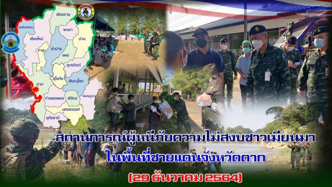 ตามที่ได้เกิดเหตุการณ์การสู้รบในประเทศเมียนมา ในพื้นที่ตรงข้ามจังหวัดตาก ของประเทศไทย ตั้งแต่วันที่ 16 – 28 ธันวาคม 2564 ที่ผ่านมา ได้เกิดการปะทะกันหลายครั้ง ระหว่างทหารเมียนมา กับ กองทัพปลดปล่อยแห่งชาติกะเหรี่ยง (Karen National Liberation Army : KNLA) กองพลน้อยที่ 6 ในพื้นที่บ้านเลเก้ก่อ จังหวัดเมียวดี รัฐกะเหรี่ยง สาธารณรัฐแห่งสหภาพเมียนมา ด้านตรงข้าม ตำบลแม่ตาว อำเภอแม่สอด จังหวัดตาก ทำให้มีผู้หนีภัยความไม่สงบชาวเมียนมา (ผภสม.) ได้อพยพข้ามมายังฝั่งไทย