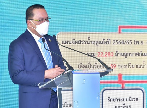 จากปริมาณน้ำต้นทุนทั่วประเทศ วันที่ 1 พฤศจิกายน 2564 จํานวน 37,857 ล้าน ลบ.. วางแผนจัดสรรน้ำ จํานวน 22,280 ล้าน ลบ.. (สํารองน้ำต้นฤดูฝนปี 2565 รวม 15,577 ล้าน ลบ..) โดยจัดลําดับความสําคัญ ตามกิจกรรม ดังนี้ การอุปโภคบริโภค รักษาระบบนิเวศและอื่นๆ การเกษตรฤดูแล้ง และอุตสาหกรรม โดยมีแผนการเพาะปลูกข้าวนาปรัง จํานวน 6.41 ล้านไร่