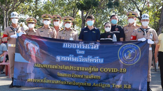 เมื่อวันที่ 4 ม.ค.65 กองทัพเรือโดยฐานทัพเรือสัตหีบ พล.ร.ท.นฤพล เกิดนาค ผู้บัญชาการฐานทัพเรือสัตหีบร่วมกับอำเภอสัตหีบและเทศบาลเมืองสัตหีบ นำ จนท.จัดตั้งหน่วยบริการตรวจคัดกรองโควิด-19 เชิงรุกฟรี ระหว่างวันที่ 4-5 ม.ค.65 โดยให้บริการตรวจคัดกรองเชิงรุก แบบ Antigen Test Kit (ATK) ให้กับข้าราชการทหาร ครอบครัว และพี่น้องประชาชน ที่เดินทางกลับจากเทศกาลปีใหม่ 2565
