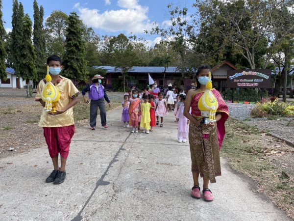 งานกีฬาสีมิติใหม่ เช่าชุดไทยใส่งานกีฬาสี ยืมจากศาลเจ้าแม่ตะเคียนทองข้างโรงเรียน