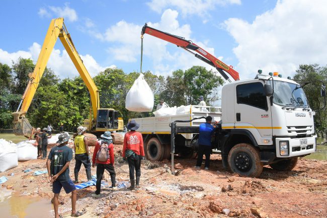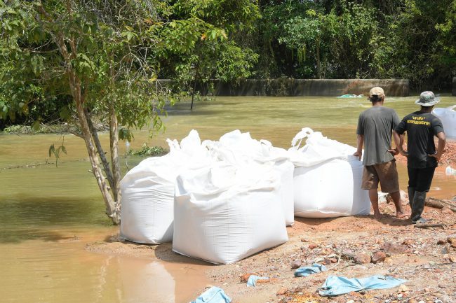ในส่วนของบริเวณพนังกั้นน้ำชั่วคราวชุมชนตลาดมูโนะ ขณะนี้ระดับน้ำลดลงอย่างต่อเนื่องต่ำกว่าตลิ่งแล้ว สำนักงานชลประทานที่ 17 ได้นำกระสอบทรายเข้าไปเสริมความแข็งแรงคันกั้นน้ำชั่วคราวแล้ว ส่วนที่ประตูระบายน้ำปากคลองระบายน้ำมูโนะ(ปตร.มูโนะ) โครงการส่งน้ำและบำรุงรักษาโก-ลก ได้ดำเนินการวางกล่องกระชุหิน (Gabion) บรรจุหินมาวางเพิ่มเติมด้านท้าย เพื่อเสริมความแข็งแรงและป้องกันน้ำกัดเซาะคันดินด้านท้ายปตร.ดังกล่าว ทำให้สถานการณ์คลี่คลายดีขึ้นตามลำดับ ช่วยบรรเทาความเดือดร้อนให้กับประชาชนในพื้นที่ด้านท้ายปตร.ได้เป็นอย่างมาก