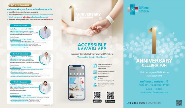 ผู้สนใจสามารถสอบถามรายละเอียดเพิ่มเติมได้ที่ โรงพยาบาลนวเวช โทร. 02 483 9999 หรือwww.navavej.com