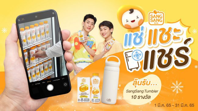 “ซังซัง” นมถั่วเหลืองคั้นสด ผลิตจากเมล็ดถั่วเหลืองจากประเทศแคนาดา รสชาติอร่อย หอมมัน และมีน้ำตาลน้อยกว่า 2% พร้อมด้วย “ออฟ-กัน” นำขบวนชวนมาอร่อยสดชื่นรับหน้าร้อนนี้กับซังซังแช่เย็นถึงใจ พร้อมชวนร่วมกิจกรรม “ซังซัง แช่..แชะ..แชร์” ลุ้นรับกระบอกน้ำ SangSang Tumbler จำนวน 10 รางวัล กติการ่วมสนุกเริ่มจากถ่ายรูปซังซัง แบบกล่องหรือขวดขณะแช่เย็น โพสต์รูปที่ถ่ายพร้อมแคปชันรีวิวซังซังแช่เย็น จากนั้นโพสต์ลงโซเชียล (FB, IG หรือ Twitter) แล้วติด #SangsangSummer #ซังซังนมถั่วเหลืองคั้นสด #SangsangSoymilk เเคปโพสต์แปะใต้กิจกรรมนี้ก็ลุ้นรับกระบอกน้ำ SangSang Tumbler และ Gift Set มูลค่า 590 บาท ไปเลย (1 คนต่อ 1 สิทธิ์)