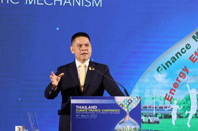 สำนักงานนโยบายและแผนทรัพยากรธรรมชาติและสิ่งแวดล้อม ในฐานะหน่วยงานประสานงานกลางของประเทศภายใต้กรอบอนุสัญญาสหประชาชาติว่าด้วยการเปลี่ยนแปลงสภาพภูมิอากาศ ได้ตระหนักถึงความสำคัญในการสร้างความตระหนักรู้ และการเข้าถึงกลไกทางการเงินเพื่อขับเคลื่อนการดำเนินงานด้านการเปลี่ยนแปลงสภาพภูมิอากาศของประเทศ ดร. พิรุณ สัยยะสิทธิ์พานิช เลขาธิการสำนักงานนโยบายและแผนทรัพยากรธรรมชาติและสิ่งแวดล้อม (สผ.) กล่าวว่า ตามที่ประเทศไทยได้ประกาศต่อประชาคมโลกในการมุ่งบรรลุเป้าหมายความเป็นกลางทางคาร์บอนภายในปี ค.ศ. 2050 และเป้าหมายการปล่อยก๊าซเรือนกระจกเป็นศูนย์ ภายในปี ค.ศ. 2065 การประชุมครั้งนี้ จึงมุ่งหวังให้ทุกภาคส่วนได้รับทราบกลไกทางการเงินด้านการเปลี่ยนแปลงสภาพภูมิอากาศ และแหล่งเงินทุนเพื่อการดำเนินงานด้านการเปลี่ยนแปลงสภาพภูมิอากาศ รวมถึงรับฟังความคิดเห็นจากภาคเอกชนเกี่ยวกับความท้าทายในการพัฒนาธุรกิจที่ปล่อยก๊าซเรือนกระจกต่ำ และความต้องการรับการสนับสนุนจากภาครัฐ เพื่อให้สามารถแข่งขันและพัฒนาธุรกิจที่ปล่อยก๊าซเรือนกระจกต่ำได้