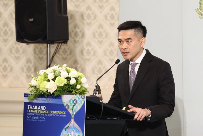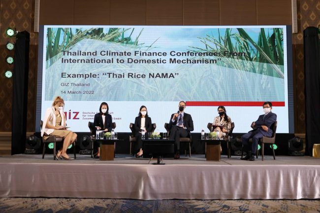 สำนักงานนโยบายและแผนทรัพยากรธรรมชาติและสิ่งแวดล้อม (สผ.) ร่วมกับโครงการด้านนโยบาย ภายใต้แผนงานความร่วมมือไทย – เยอรมัน ด้านการเปลี่ยนแปลงสภาพภูมิอากาศ องค์กรความร่วมมือระหว่างประเทศของเยอรมัน (GIZ) จัดการประชุมสัมมนากลไกการเงินด้านการเปลี่ยนแปลงสภาพภูมิอากาศ “Thailand Climate Finance Conference: From International to Domestic Mechanism” เพื่อเผยแพร่ข้อมูลทางการเงินและการลงทุนด้านการเปลี่ยนแปลงสภาพภูมิอากาศ ให้ทุกภาคส่วนได้รับทราบกลไกทางการเงินด้านการเปลี่ยนแปลงสภาพภูมิอากาศ และโอกาสในการเข้าถึงแหล่งเงินทุน และรับฟังความคิดเห็นของภาคเอกชนเกี่ยวกับความท้าทาย ช่องว่างและโอกาสในการพัฒนาธุรกิจที่ปล่อยก๊าซเรือนกระจกต่ำรวมทั้งความต้องการขอรับการสนับสนุนในการพัฒนาและการลงทุนในเทคโนโลยีที่ปล่อยก๊าซเรือนกระจกต่ำผ่านการประชุมเชิงปฏิบัติการเชิงลึก