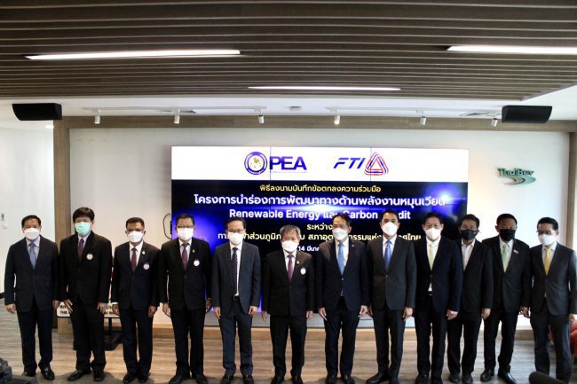 วันจันทร์ที่ 14 มีนาคม 2565 สภาอุตสาหกรรมแห่งประเทศไทย (ส.อ.ท.) จับมือ การไฟฟ้าส่วนภูมิภาค ประกาศโครงการนำร่องการพัฒนาทางด้านพลังงานหมุนเวียน (Renewable Energy: RE) และ Carbon Credit เพื่อจัดทำฐานข้อมูลและการรับรองการผลิตไฟฟ้า RE และ Carbon Credit โดยเชื่อมต่อกับ Platform ของ ส.อ.ท. เพื่อให้สามารถใช้เป็นต้นแบบตามแนวทางการพัฒนาเทคโนโลยี และการประยุกต์ใช้ RE ตลอดจนขยายผลการศึกษาและการพัฒนาไปสู่โครงการอื่นๆ ต่อไป เช่น โครงการ ERC Sandbox ระยะที่ 2 ในการตอบโจทย์และแก้ไขปัญหาของการค้าการส่งออกของประเทศไทยเป็นสำคัญ