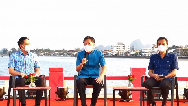 จากนั้น ได้เชิญ ผู้บริหารองค์กรปกครองส่วนท้องถิ่น ส่วนราชการ ผู้แทนหน่วยงานที่เกี่ยวข้องในการจัดงาน ขึ้นเวทีการแถลงข่าว ประกอบด้วย​ นายเสถียร​ เจริญเหรียญ​ ผู้ว่าราชการจังหวัดประจวบคีรีขันธ์​ นายสราวุธ ลิ้มอรุณรักษ์ นายกองค์การบริหารส่วนจังหวัดประจวบฯ นายกมล แก้วเทศ นายกเทศมนตรีเมืองประจวบฯ นายชาญวิทย์ อุณหสุทธิยานนท์ ประธานสภาวัฒนธรรมจังหวัด​ นายแพทย์วัชรพงษ์​ เหลืองไพรัตน์​ รองนายแพทย์สาธารณสุขจังหวัดประจวบฯ ทั้งนี้การจัดงานจะมีขึ้นในระหว่างวันที่ 1 – 10 เมษายน 2565 ที่บริเวณสวนสาธารณะเฉลิมพระเกียรติฯ หน้าศาลากลางจังหวัด และบริเวณชายทะเลริมอ่าวประจวบคีรีขันธ์