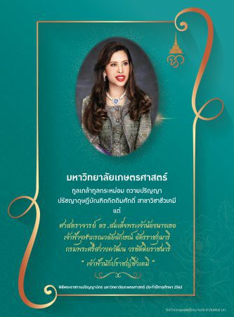 มหาวิทยาลัยเกษตรศาสตร์ ขอพระราชทานทูลเกล้าฯ ถวายปริญญา ปรัชญาดุษฎีบัณฑิตกิตติมศักดิ์ สาขาวิชาชีวเคมี แด่ ศาสตราจารย์ ดร. สมเด็จพระเจ้าน้องนางเธอ เจ้าฟ้าจุฬาภรณวลัยลักษณ์ อัครราชกุมารี กรมพระศรีสวางควัฒน วรขัตติยราชนารี