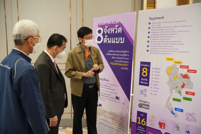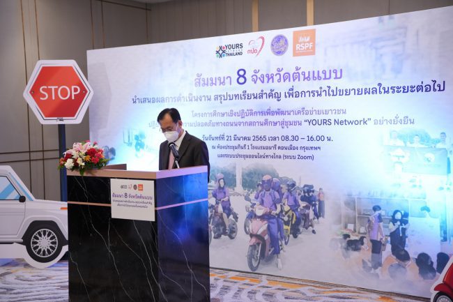 ทั้งนี้ เวทีมีการนำเสนอบทเรียนโครงการฯ ผลการดำเนินงานใน 8 จังหวัดต้นแบบ (เชียงใหม่, พิษณุโลก, อุดรธานี, สกลนคร, บุรีรัมย์, จันทบุรี, นครนายก, สงขลา) ในภาพรวมมีการจัดตั้งคณะทำงานระดับจังหวัด ภายใต้กลไกศูนย์อำนวยการความปลอดภัยทางถนนระดับจังหวัด เพื่อสนับสนุนการขับเคลื่อนงานของเครือข่ายเยาวชน และมีการจัดตั้งชมรม YOURS Network ในสถานศึกษา 38 แห่ง เพื่อเปิดพื้นที่ให้เด็กและเยาวชนทำกิจกรรด้านความปลอดภัยทางถนนและขยายผลสู่ชุมชนให้กว้างขวางขึ้น