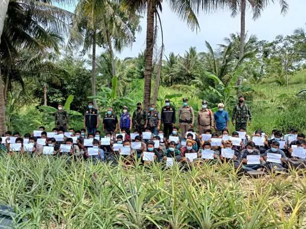 วันที่ 23 มี.ค.2565 ภายใต้การอำนวยการของ นายเสถียร เจริญเหรียญ ผู้ว่าราชการจังหวัดประจวบคีรีขันธ์ นายพรหมพิริยะ กิจนุสนธิ์ รองผู้ว่าราชการจังหวัดฯ ฝ่ายความมั่นคง, นายสินาทร โอ่เอี่ยม ปลัดจังหวัดประจวบคีรีขันธ์ และว่าที่พันตรีอภิญญา ศักดินันท์ นายอำเภอทับสะแก สั่งการให้ นางสาววิยะรัตน์ หนูเอก ปลัดฝ่ายความมั่นคงอำเภอทับสะแก ทหารชุดเฉพาะกิจจงอางศึก (ฉก.จงอางศึก) เจ้าหน้าที่ตำรวจ สภ.ห้วยยาง สมาชิก อส.อ.ทับสะแกที่ 6 และ กำนันตำบลห้วยยาง ผู้ใหญ่บ้าน หมู่ที่ 10 ต.ห้วยยาง ผู้ช่วยผู้ใหญ่บ้าน ซึ่งออกตรวจความสงบเรียบร้อยในพื้นที่บ้านหัวเขา หมู่ที่ 10 ต.ห้วยยาง ได้ร่วมกันทำการจับกุมผู้กระทำผิดลักลอบเข้ามาในราชอาณาจักรไทย โดยไม่ได้รับอนุญาต (พ.ร.บ.คนเข้าเมือง พ.ศ.2522) สัญชาติเมียนมาร์ จำนวน 52 คน เป็นชาย 52 คน บริเวญริมป่าใกล้น้ำตกบัวสวรรค์ บ้านหัวเขา ม.10 ต.ห้วยยาง อ.ทับสะแก