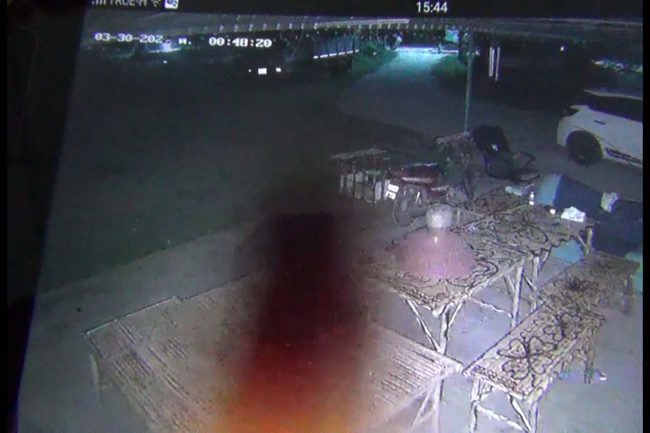 ผู้สื่อข่าวลงพื้นที่บ้านหลังดังกล่าวพบนาย พัทรินทร์ ทวีโคตร เจ้าของบ้านพร้อมด้วยชาวบ้านใกล้เคียง กำลังนั่งดูคลิป กล้องวงจรปิด เล่าว่า ตนเองและภรรยา ได้ต้มใส้หมูเพื่อเป็นอาหารเย็น และเหลือใส้หมูไว้ในหม้อในครัวข้างบ้าน พอตื่นเช้าขึ้นมาเจอใส้หมูตกอยู่บนพื้น คิดว่ามีแมวมากิน ภรรยาสงสัยเลยมาเปิดกล้องวงจรปิดดู ตอนกลางคืนวันที่ 30 มีนาคม เวลาประมาณ 5 ทุ่มกว่า เห็นเป็นแสงเงาคล้ายผู้หญิง นานเป็นชั่วโมง เห็นทีแรกก็ตกใจ และคิดว่าเป็นกระสือ คล้ายคนมีแสง นานเกือบชั่วโมง เห็นทีแรกประมาณ 5 ทุ่มเศษ จนถึงตีหนึ่ง ตอนแรกเห็นเป็นเงาลาง ๆ ต่อจากนั้นก็ไม่เห็นเลย