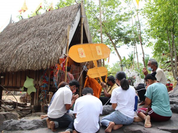 ชาวบ้านแห่เชิญว่าวขึ้นฟ้าถวายหลวงปู่สรวง “วัดป่าพลาญเพชร”