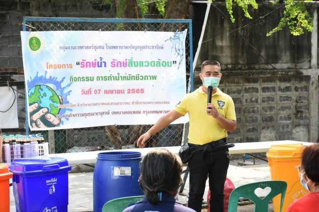 วันที่ 7 เมษายน 2565 กลุ่มงานเวชศาสตร์ชุมชน โรงพยาบาลเจริญกรุงประชารักษ์ สำนักการแพทย์ กรุงเทพมหานคร จัดโครงการ “รักษ์น้ำ รักษ์สิ่งแวดล้อม” กิจกรรม การทำน้ำหมักชีวภาพ โดยได้รับเกียรติ จาก นพ.พรเทพ แซ่เฮ้ง ผู้อำนวยการโรงพยาบาลเจริญกรุงประชารักษ์ เป็นประธานเปิดงานพร้อมกล่าวทักทายพูดคุยกับประชาชนในชุมชน ในโครงการ “รักษ์น้ำ รักษ์สิ่งแวดล้อม” กิจกรรม การทำน้ำหมักชีวภาพ ได้วิทยากรจาก ฝ่ายรักษาความสะอาดและสวนสาธารณะ สำนักงานเขตบางคอแหลม จัดขึ้น ณ กิจกรรมชุมชนมาตานุสรณ์ เขตบางคอแหลม กรุงเทพมหานคร