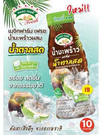 บริษัท ศรีนานาพร มาร์เก็ตติ้ง จำกัด (มหาชน) หรือ SNNP เปิดตัว เมจิก ฟาร์ม เฟรช “น้ำมะพร้าวผสมน้ำตาลสด” น้องใหม่จากแบรนด์เมจิกฟาร์มน้ำมะพร้าวคุณภาพที่คุ้นเคยผสานความอร่อยของน้ำตาลสดแท้คุณภาพสูงที่ทำจากช่อดอกของน้ำตาลโตนดจากแปลงเกษตรอินทรีย์ ผสานวุ้นมะพร้าวเคี้ยวหนึบ คัดสรรวัตถุดิบชั้นดีจากธรรมชาติสู่มือผู้บริโภค ผ่านกรรมวิธีการผลิตที่ทันสมัย ไม่ใส่วัตถุกันเสีย อร่อยสดชื่น ดับกระหาย คลายร้อน บรรจุในขวด 240 มล. พร้อมวางจำหน่ายในราคาขวดละ 10 บาท หาซื้อได้ที่ร้านค้าทั่วไป