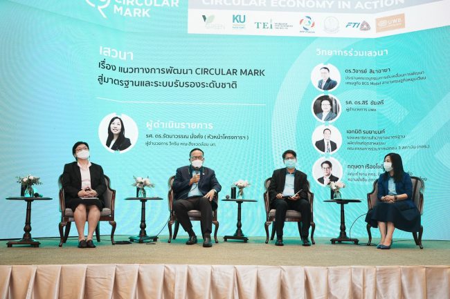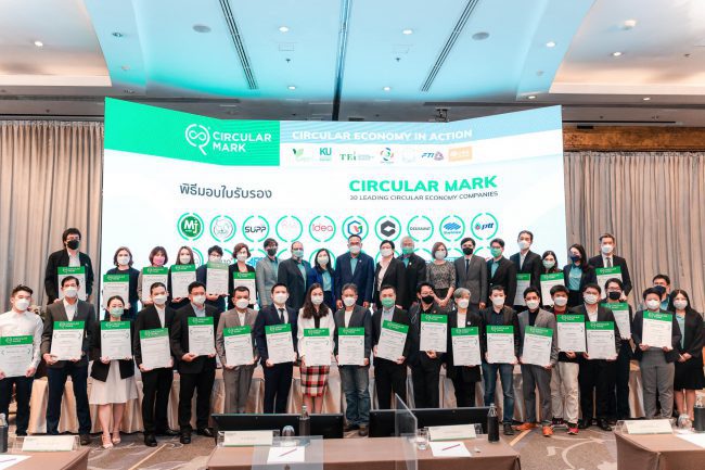 สำหรับ CIRCULAR MARK หรือ ฉลากผลิตภัณฑ์หมุนเวียน พัฒนาครั้งแรกในโลก โดยประเทศไทย นั้น มีการพิจารณาข้อกำหนดจากประเด็นปัญหาการหมุนเวียนวัสดุ การปล่อยก๊าซเรือนกระจก และ ผลกระทบต่อสิ่งแวดล้อมด้านอื่น ๆ โดยตลอดวัฏจักรชีวิตของผลิตภัณฑ์ มุ่งเป้าส่งเสริมการใช้วัสดุอย่างคุ้มค่า หมุนเวียนสู่ระบบเพื่อสร้างมูลค่าทางเศรษฐกิจ ลดปริมาณขยะที่ถูกนำไปกำจัดด้วยการฝังกลบ และ ลดปริมาณการปล่อยก๊าซเรือนกระจก รวมทั้ง ผลกระทบต่อสิ่งแวดล้อมด้านอื่น ๆ ช่วยสร้างคุณภาพสิ่งแวดล้อมและคุณภาพชีวิตที่ดีให้กับสังคมไทยและประชาคมโลก โดยเน้น 5 กลุ่มอุตสาหกรรมเป้าหมาย คือ เกษตรอาหาร วัสดุก่อสร้าง พลาสติก บรรจุภัณฑ์ และแฟชั่นไลฟ์สไตล์ ซึ่งในขณะนี้ มี 30 บริษัทผู้นำเศรษฐกิจหมุนเวียน 376 ผลิตภัณฑ์แรก ได้รับการรับรอง CIRCULAR MARK เป็นกลุ่มแรกของประเทศไทย เป็นที่เรียบร้อยแล้ว ประกอบด้วย กลุ่มเกษตรอาหาร 5 บริษัท 16 ผลิตภัณฑ์ กลุ่มวัสดุก่อสร้าง 11 บริษัท 170 ผลิตภัณฑ์ กลุ่มพลาสติก 4 บริษัท 9 ผลิตภัณฑ์ กลุ่มบรรจุภัณฑ์ 5 บริษัท 48 ผลิตภัณฑ์ กลุ่มแฟชั่นและไลฟ์สไตล์ 5 บริษัท 133 ผลิตภัณฑ์ ผู้ประกอบการอุตสาหกรรมที่นำแนวคิดเศรษฐกิจหมุนเวียนไปประยุกต์ใช้ สามารถใช้ ใบรับรอง CIRCULAR MARK ในการทำการตลาด สร้างยอดขายจากนโยบายการจัดซื้อจัดจ้างสินค้าที่เป็นมิตรต่อสิ่งแวดล้อมของภาครัฐและเอกชน รวมทั้ง การส่งออกไปต่างประเทศที่ต่างขานรับแนวคิดเศรษฐกิจหมุนเวียน