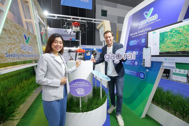 วรุณาในฐานะผู้นำการใช้เทคโนโลยีอัจฉริยะ เพื่อขับเคลื่อนให้เกิดประโยชน์สูงสุดต่อภาคการเกษตรของประเทศไทย โดยผสานเทคโนโลยีดาวเทียม (Satellite) กับการใช้ข้อมูลสำรวจและภาพถ่ายจากโดรนมัลติสเปกตรัม (Multispectrum Drone) และนำดาต้ามาวิเคราะห์ด้วยเทคโนโลยีปัญญาประดิษฐ์ (AI) ผ่านแพลตฟอร์ม “Varuna Analytics” ช่วยติดตามสุขภาพของพืช (Crop Health Monitoring) ติดตามการเจริญเติบโตของพืช (Growth Stage Monitoring) และช่วยคาดการณ์ผลผลิต (Yield Prediction) ได้อย่างแม่นยำแล้ว วรุณายังได้พัฒนาโดรนการเกษตรในชื่อ “เจ้าเอี้ยง AIANG” ซึ่งเป็นเทคโนโลยีที่ช่วยเกษตรกรในเรื่องการพ่นปุ๋ยและฉีดผลิตภัณฑ์การเกษตร นอกจากนี้ยังมีการอบรมนักบินโดรนมืออาชีพทั้งภาคทฤษฎีและปฏิบัติ เพื่อให้นักบินโดรนได้รับใบอนุญาตการบินที่ถูกต้อง สามารถฉีดแปลงเกษตรได้อย่างมีประสิทธิภาพและแม่นยำเหมาะกับพืชแต่ละประเภท อาทิ อ้อย ข้าวโพด ข้าว และมันสัมปะหลัง โดยปัจจุบันมีนักบินโดรนมืออาชีพพร้อมให้บริการในพื้นที่ต่างๆ และตั้งเป้าเพิ่มขึ้นเป็น 500 คนในปี 2565 นอกจากนี้วรุณากำลังพัฒนาซอฟท์แวร์แอปพลิเคชันเพื่อช่วยบริหารจัดการงานของนักบิน และจับคู่นักบินโดรนมืออาชีพกับเกษตรกร (Service Matching) ที่ต้องการใช้บริการโดรนฉีดแปลงเกษตรให้เชื่อมต่อกันและสามารถเรียกใช้บริการตามความต้องการอย่างมีประสิทธิภาพ