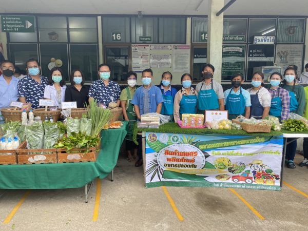 สนง.เกษตรบางสะพานน้อย​ นำอาหารพืชผักปลอดสารพิษบุกขายตลาดนัดสีเขียวโรงพยาบาลบางสะพานน้อย หลังโควิดเริ่มคลาย