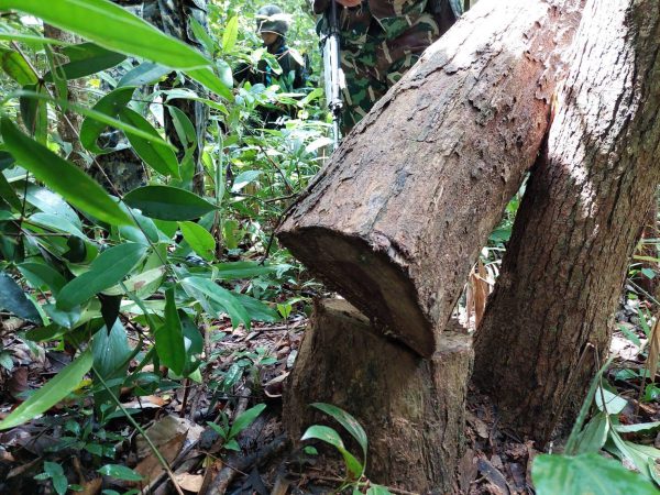 ผู้สื่อข่าวรายงานต่อไปว่า จากนั้น นายอำเภอภูสิงห์ พร้อมด้วยเจ้าหน้าที่กองกำลังร่วมได้เดินทางไปที่พลาญรถเขียว จากนั้น ได้เดินเท้าเข้าไปตรวจตามแนวชายแดนไทย – กัมพูชา ซึ่งเจ้าหน้าที่ได้ร่วมกันเดินลาดตระเวนตามแนวชายแดน พบว่า มีการแอบลักลอบตัดไม้ตะเคียนทองและไม้หวงห้ามขนาดต่าง ๆ เจ้าหน้าที่จึงได้ทำการตรวจยึดไว้เพื่อดำเนินการตามกฎหมาย