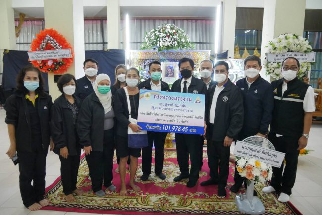 รมว.เฮ้ง ส่ง เลขาฯ รมว. “สุเทพ” รุดมอบเงินทดแทน แก่ทายาทผู้ประกันตนเสียชีวิตเหตุไฟไหม้ผับ Mountain B สัตหีบ