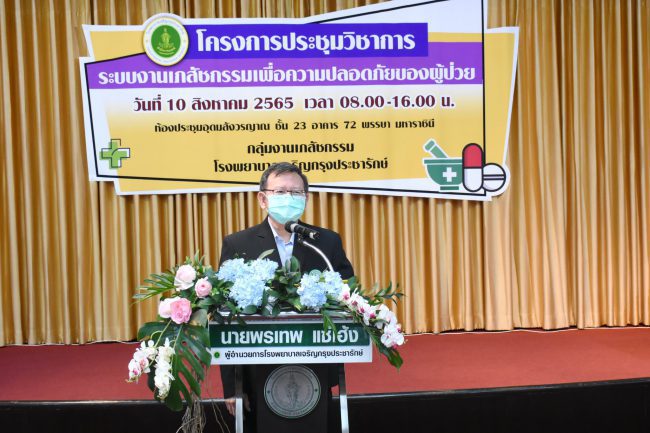 วันที่ 10 สิงหาคม 2565 นพ.พรเทพ แซ่เฮ้ง ผู้อำนวยการโรงพยาบาลเจริญกรุงประชารักษ์ สำนักการแพทย์ กรุงเทพมหานคร เป็นประธานเปิดโครงการประชุมวิชาการระบบงานเภสัชกรรม เพื่อความปลอดภัยของผู้ป่วย ณ ห้องประชุมอุดมสังวรญาณ ชั้น 23 อาคาร 72 พรรษา มหาราชินี โดยมีวัตถุประสงค์เพื่อให้บุคลากรทางการแพทย์มีความรู้ ความเข้าใจ เพิ่มพูนทักษะ รวมทั้งแลกเปลี่ยนความคิดเห็นประสบการณ์การทำงานในส่วนที่เกี่ยวข้องกับงานด้ายเภสัชกรรมให้มีประสิทธิภาพมากยิ่งขึ้นและผู้มารับบริการมีคุณภาพชีวิตที่ดีขึ้น