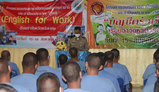 ผู้บัญการเรือนจำจังหวัดศรีสะเกษ เปิดฝึกอบรมภาษาอังกฤษเพื่อการทำงาน English for work สร้างอาชีพ สร้างรายได้ ให้ผู้ต้องข้ง คืนคนดีสู่สังคม